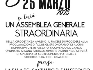 “Nella circostanza avremo anche il piacere di procedere alla proclamazione di 'Consigliere Onorario' di alcuni nominativi che in passato, ricoprendo la carica ordinaria, si sono particolarmente distinti nell'attività di sviluppo ed accrescimento materiale e socioculturale del quartiere” - fa sapere Russo.