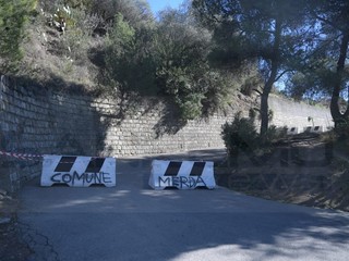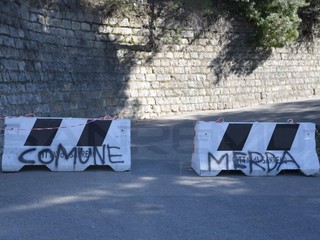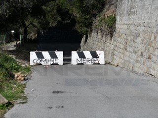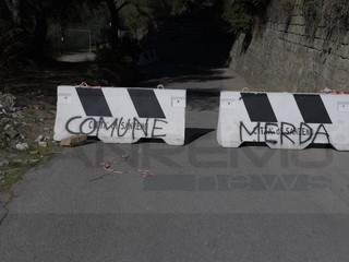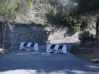 La strada era stata chiusa per la caduta di massi da un terreno privato. Sono state rubate le transenne e, sui new jersey è comparsa la scritta 'Comune di merda'. Ora si svolgeranno indagini con le telecamere presenti in zona