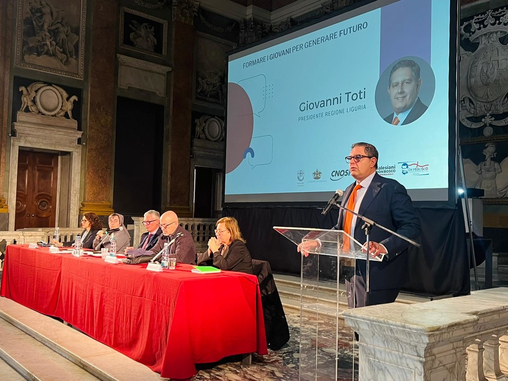 Così il presidente della Regione Liguria Giovanni Toti durante il convegno che si è svolto oggi a Palazzo Ducale “Formare i giovani per generare il futuro. Alleanze vincenti nel mondo del lavoro” in occasione dei 150 anni dei Salesiani a Genova, a cui hanno partecipato anche l’assessore regionale alla Formazione Marco Scajola, l’assessore al Lavoro Augusto Sartori e l’assessore alla Scuola Simona Ferro.