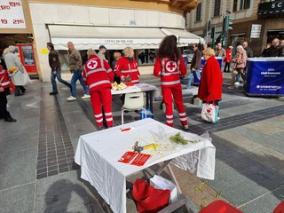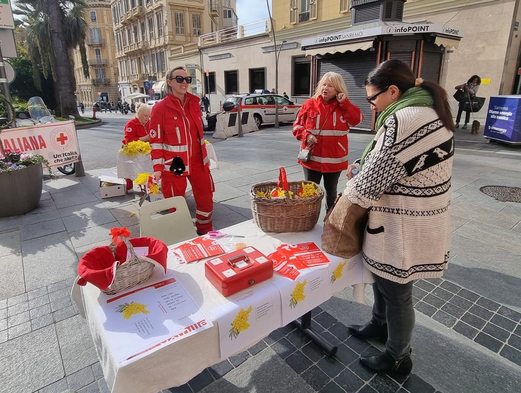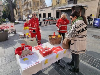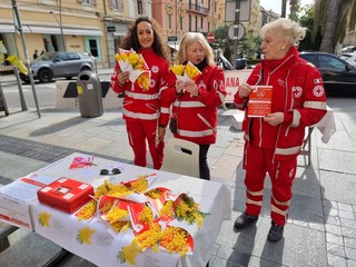 Non solo mimosa… ma anche tanta informazione quelle offerte questa mattina dalle volontarie sanremesi di Croce Rossa Italiana davanti al teatro Centrale.