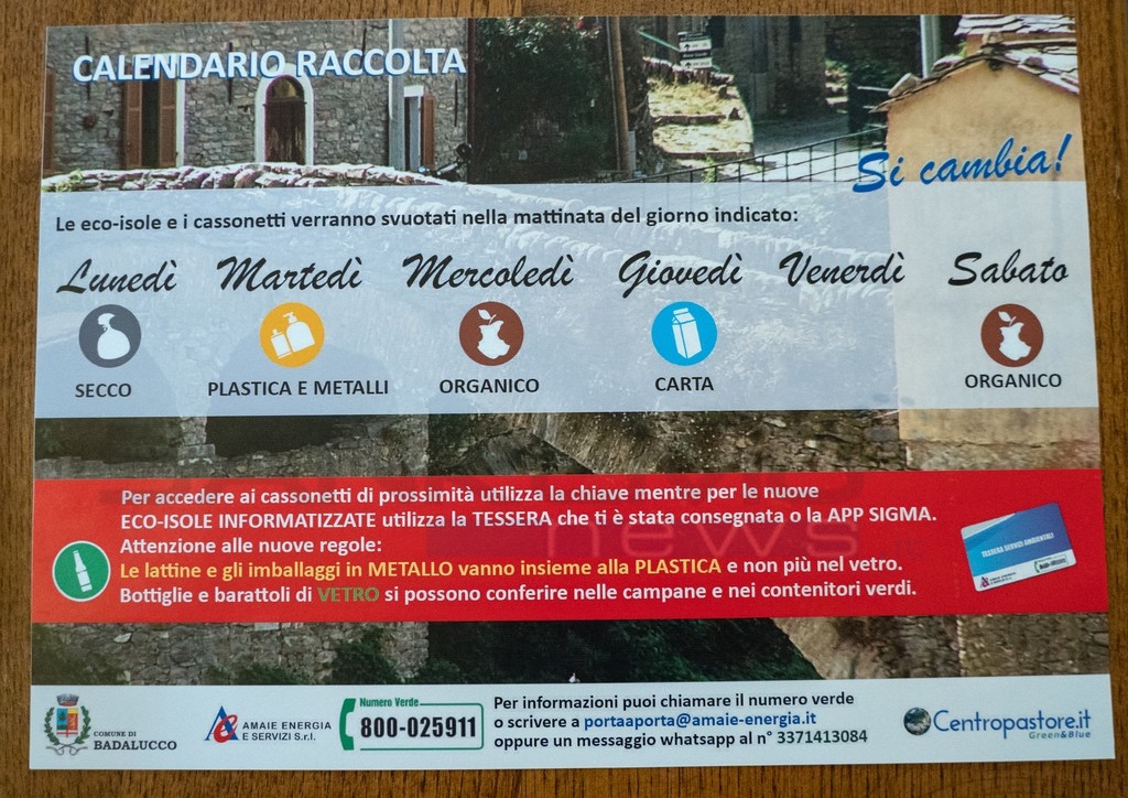 Va detto che il sistema adottato da Badalucco sarà abbastanza 'indolore' rispetto ad esempio al porta a porta spinto che da anni viene attuato a Taggia e Sanremo. I nuovi cassonetti per il territorio badalucchese si troveranno negli stessi punti. Rispetto a prima, i cittadini dovranno entrare nell'ottica di separare le diverse frazioni di rifiuto in modo corretto.