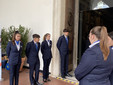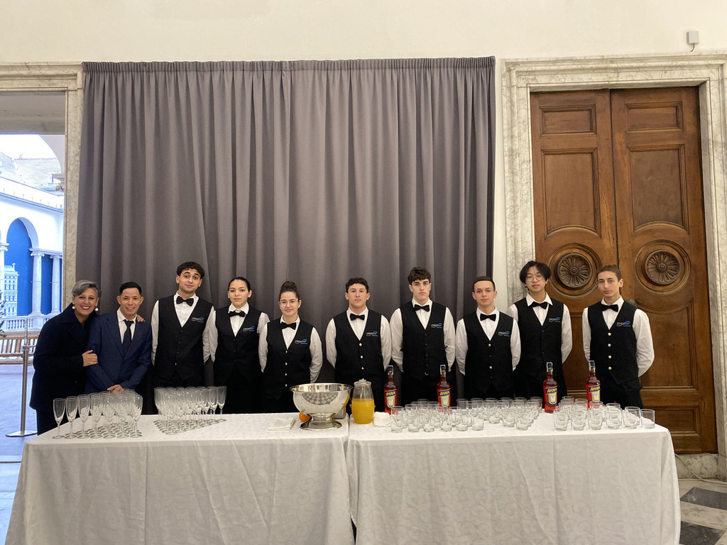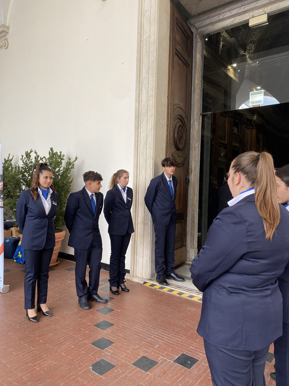 I ragazzi del corso turistico hanno accolto gli ospiti, consegnato loro il materiale necessario per seguire al meglio il convegno e hanno accompagnato i partecipanti, rimanendo a disposizione in sala per ogni necessità. Gli allievi del corso ristorazione, invece, hanno aiutato nell’allestimento dell’elegante buffet nella sala adiacente a quella del Maggior Consiglio e hanno svolto il servizio in sala.
