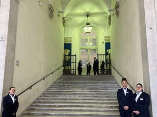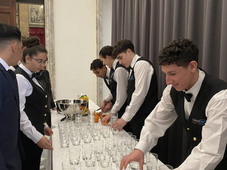 I ragazzi del corso turistico hanno accolto gli ospiti, consegnato loro il materiale necessario per seguire al meglio il convegno e hanno accompagnato i partecipanti, rimanendo a disposizione in sala per ogni necessità. Gli allievi del corso ristorazione, invece, hanno aiutato nell’allestimento dell’elegante buffet nella sala adiacente a quella del Maggior Consiglio e hanno svolto il servizio in sala.