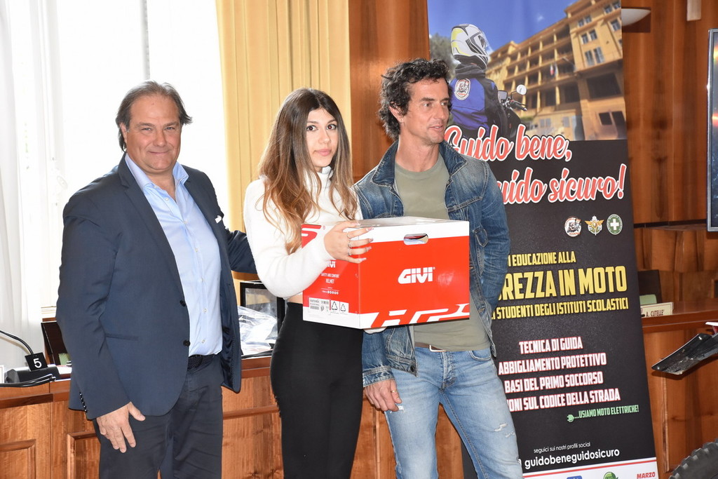 Alla cerimonia hanno partecipato: il Presidente del Consiglio Comunale Alessandro Il Grande, il Consigliere Comunale Luca Lombardi, il Comandante della Polizia Locale di Sanremo Dott. Claudio Frattarola, la Dirigente del Liceo G.D. Cassini di Sanremo Dott.ssa Mara Ferrero, Livio Bellone e Roberto Sassone tecnici della Federazione Motociclistica Italiana e Davide Marino della Croce Bianca di Imperia.