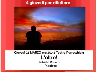 “Si è pensato di proporre degli spunti che possano servire ad ogni adulto in cammino o in ricerca in questo tempo complesso” - spiega don Rito Alvarez, parroco della parrocchia di San Rocco a Vallecrosia - “I temi e i relatori scelti sono stati pensati proprio per questo, ripartire dalla nostra umanità attraverso semplici concetti: l'altro, l'ascolto, il confronto e il cambiamento. Il primo dei quattro incontri si terrà giovedì 23 alle 20.45 presso il teatro parrocchiale di San Rocco a Vallecrosia e avrà come tema l'altro”.