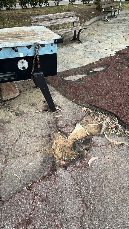 “La situazione mette a rischio l’incolumità dei bambini che lo frequentano – scrive Lombardi - nonché dei loro accompagnatori. Sono evidenti molti gli inciampi e òe buche sul fondo anti-shock che dovrebbe invece proteggere i frequentatori. Molti concittadini preferiscono, per questa criticità, portare a giocare i propri bambini in parchi di altre città in miglior stato di manutenzione. E’ infatti presente uno stato di incuria complessivo anche di alcuni giochi e delle panchine, nonché dell’asfalto della carreggiata vicina e delle reti”.