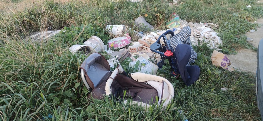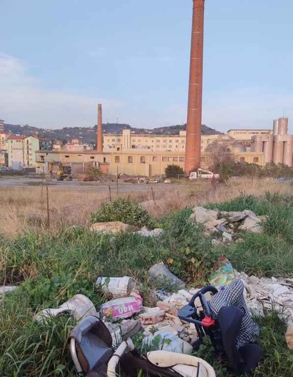 Vecchi passeggini, sedie da ufficio, materiale proveniente da cantieri edili, plastica e rifiuti ingombranti sono stati abbandonati nel grande terrapieno tra il depuratore e le ex Ferriere. Uno scempio a cielo aperto in una zona dove ad aprile dovrebbe iniziare la grande opera di riqualificazione dopo la demolizione della ciminiera centrale.