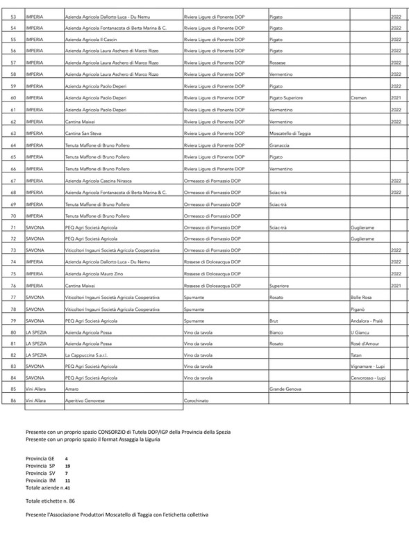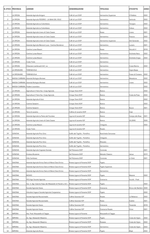 “Siamo pronti per iniziare questa nuova avventura al fianco dei nostri fantastici produttori. Un onore poter rappresentare nella principale vetrina del vino, una schiera di aziende che, sempre più, si sta identificando in un territorio unico come quello ligure – aggiunge Marco Rezzano, presidente di Enoteca Regionale - In uno stand di grande impatto scenografico promuoveremo le nostre eccellenze. Avremo una vasta scelta di etichette in assaggio che sono la sintesi dei nostri iconici vini Vermentino, Pigato, Bianchetta, Bosco, Rossese, Ormeasco, Granaccia e tutti gli altri declinati nelle diverse tipologie produttive. Saranno tutti protagonisti dei nostri racconti per 5 giorni, tra il banco di assaggio collettivo, le 12 postazioni individuali e la saletta business. Non vediamo l’ora che aprano i battenti”.