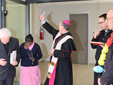 La cerimonia di inaugurazione è iniziata con un benvenuto speciale, organizzato dalle suore missionarie, di origini indiane, accogliendo con la tradizionale ghirlanda di fiori, S.E. Mons. Antonio Suetta, il Superiore Generale Don Savino D'Amelio e il Vice-Sindaco di Sanremo Costanza Pireri, accompagnandoli con un danza e un canto tradizionale indiano, cospargendo di fiori il loro percorso, sino all'ingresso della palestra. Dopo il saluto di Don Savino D'Amelio, la Madre Generale e la Vicaria delle suore della Sacra Famiglia, hanno svelato la targa in memoria della Superiora Suor Elvira Econimo. Il taglio del nastro è stato fatto dal Vice-Sindaco di Sanremo, dal Sindaco di Ospedaletti e dalla Direttrice dell'Istituto Giada Chiuri. Dopo la benedizione di S.E. Mons. Suetta, alla nuova struttura dedicata a Suor Elvira Econimo, la palestra ha aperto ufficialmente le sue porte a tutti gli ospiti, dove è stato presentato il progetto realizzato dall'Arch. Enrico De Carlo con le varie fasi di esecuzione della palestra. Un breve video, ha fatto scoprire la grande umanità di Padre Semeria, sempre rivolto a dare un aiuto ai bambini orfani e più sfortunati.