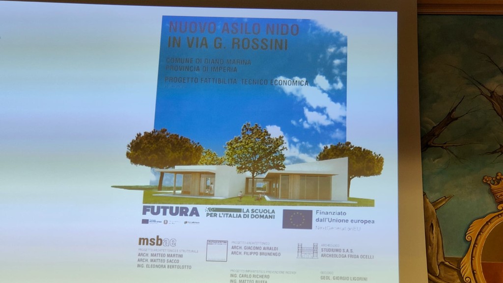 "Devo ringraziare anche tutti i progettisti perché sono riusciti a mettere in campo in pochissimo tempo una progettazione così complicata, ma al tempo stesso anche gradevole dal punto di vista estetico. Entrambe i plessi saranno inseriti in un tessuto urbano direi molto più baricentrico, quindi, possono, anche, eventualmente accogliere anche i bambini delle famiglie che arrivano anche dalla vallata con molta più facilità e non più nel centro urbano che provocava difficoltà viabilistiche e di parcheggio perché bisognava per forza arrivare nel centro storico di Diano Marina".