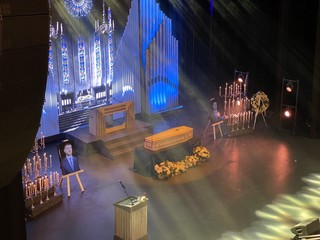 Si parte da un “salutava sempre” e si chiude con i piaceri della vita. Alessandro Cattelan porta in scena al Teatro Ariston il suo funerale, la sua spettacolare fine, per ripercorrere la vita tra piccole follie, ritratti di quotidianità, analisi sociale e giochi con il pubblico.