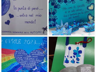 Gli alunni hanno realizzato diverse attività manuali e grafo - pittoriche, decorando gli edifici scolastici e gli spazi esterni con fiocchi, coccarde, disegni e altri addobbi blu, colore dell'Autismo, della conoscenza e della sicurezza. Nelle classi dei vari plessi, inoltre, sono state presentate letture, proiezioni di cartoni animati e video sul tema dell'inclusione. Gli alunni hanno donato voci, colori, suoni ed emozioni ai compagni più vulnerabili. Le frasi dei cartelloni sono messaggi ideali per creare un clima di fiducia reciproca in modo che anche i bambini più fragili possano sentirsi nelle condizioni di scoprire, valorizzare ed esprimere al massimo il proprio potenziale.