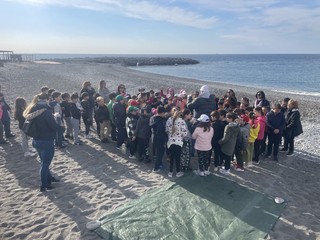 Mattinata in spiaggia per gli alunni delle terze della scuola primaria dell’Istituto Comprensivo Bordighera, a chiusura di una due giorni di lezioni sul mare e la biodiversità.