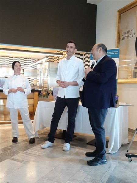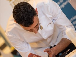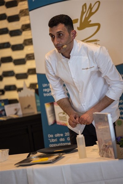 Il famoso pastry chef ha presentato di fronte ad un pubblico di oltre 100 persone una sua deliziosa creazione: “I fiori nella dolce cucina; Crostata al limone e fragole con Nasturzio”.