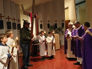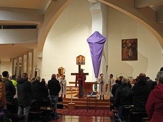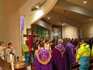 La comunità ha comunque commemorato la passione e la crocifissione di Gesù Cristo con la via Crucis che però si è svolta all'interno della parrocchia di San Rocco, gremita per l'occasione. Erano presenti anche il sindaco di Vallecrosia Armando Biasi, il vicesindaco Marilena Piardi, gli assessori Patrizia Biancheri e Antonino Fazzari, il consigliere comunale Denis Perrone, i candidati sindaco Fabio Perri e Cristian Quesada, gli alpini di Vallecrosia, la protezione civile, la Croce Azzurra Misericordia di Vallecrosia, gli scout e la polizia locale.