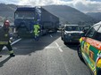 E’ di tre auto distrutte e 6 feriti (ma uno solo portato in ospedale) il bilancio dell’incidente di oggi pomeriggio, poco prima delle 16.30 sull’autostrada, tra il Confine di Stato e la barriera autostradale.