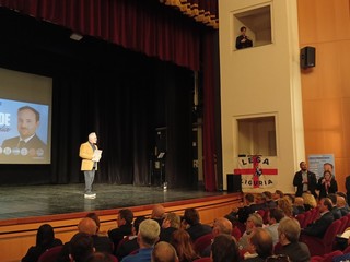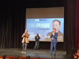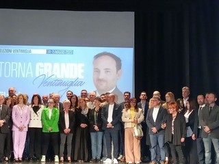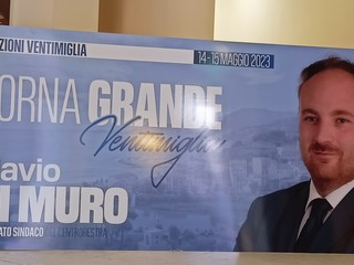 Il candidato sindaco del centrodestra Flavio Di Muro ha illustrato i motivi che lo hanno spinto a candidarsi, ha portato sul palco la sua coalizione e ha illustrato i punti del suo programma elettorale per far tornare grande Ventimiglia. "Tra i punti del programma elettorale vi è la sicurezza, legata principalmente all'immigrazione verso la quale puntiamo ad agevolare la convivenza con un patto sicurezza. Puntiamo a fare interventi mirati, a creare stazioni mobili, a cambiare il sistema di videosorveglianza della città e siamo pronti ad accogliere donne, bambini e uomini che vengono, sono regolari e vogliono integrarsi, gli altri che sporcano, disturbano e delinquono se ne devono andare. Con il nostro programma Ventimiglia torna bella, pulita, sociale, sportiva, storica, unita e amica degli animali. Torna a crescere lo sviluppo economico, a comprare e ad apprezzare. Ventimiglia torna accanto ai frontalieri. Ci occuperemo della manutenzione, dell'arredo urbano e delle grandi opere. Un punto fondamentale è l'acqua sulla quale c'è un piano nazionale. Ci occuperemo di far rinascere la passerella, che serve a collegare la città ma anche del progetto di gallerie per l'Aurelia bis sul tratto Ventimiglia - Camporosso e della stazione. Inoltre, Ponte San Ludovico diverrà Piazza Italia e sarà il centro pulsante di Ventimiglia. Punteremo a migliorare il rapporto con la Francia e il Principato di Monaco e cercheremo di collegarci a fonti di finanziamento europeo. Riscriveremo l'accordo per il parco Roja. Faremo un patto d'area per la programmazione commerciale, ci occuperemo del restyling del mercato coperto e cercheremo di rilanciare il mercato del venerdì. Desideriamo fare gemellaggio con Limone Piemonte, visto che qui con noi c'è il sindaco. Si può fare un accordo turismo monte-mare. Penseremo a valorizzare il teatro romano e la storia della città. Puntiamo sullo sport acquatico e valorizzeremo l'entroterra attraverso i suoi sentieri. Valorizzeremo il centro storico con nuovi parcheggi ed eventi di qualità. Introdurremo il baby kit per i neogenitori. Creeremo uno sportello di assistenza per i frontalieri e cercheremo, con nuovi parcheggi, di incentivate l'uso del treno. Vorrei premiare lo sportivo dell'anno che sarà l'ambasciatore della città nel mondo. Cercheremo di attrezzare Ventimiglia per gli amici a quattro zampe con un'area dedicata, una spiaggia e ci occuperemo delle colonie feline".