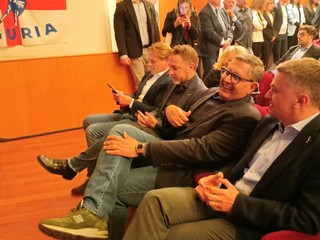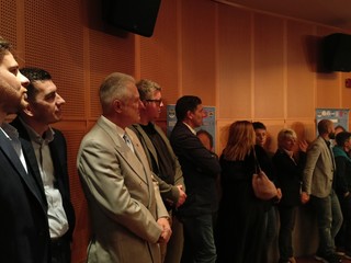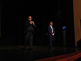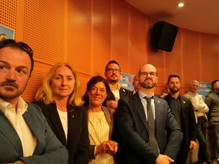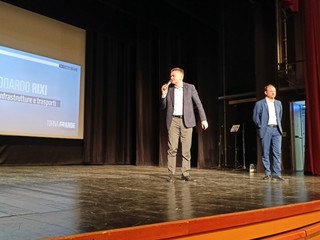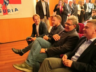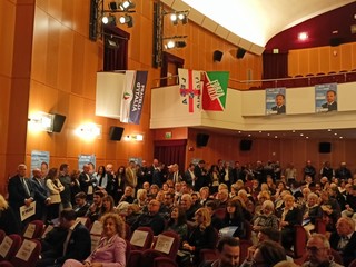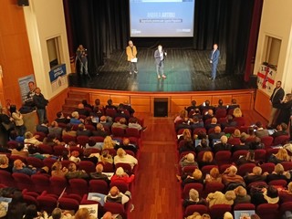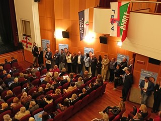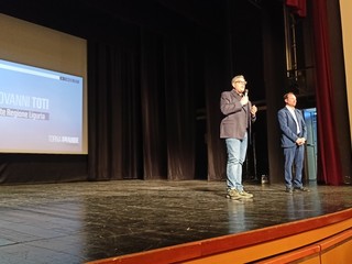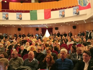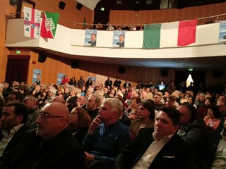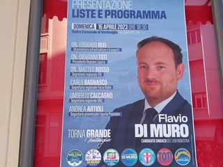 Teatro comunale di Ventimiglia gremito per la presentazione della candidatura di Flavio Di Muro a sindaco della città di confine. Per l’occasione erano presenti il presidente della Regione Liguria Giovanni Toti, il viceministro della Lega Edoardo Rixi, il senatore Gianni Berrino, il vicepresidente della Regione Alessandro Piana, l'assessore regionale Marco Scajola, i consiglieri regionali Mabel Riolfo, Chiara Cerri e Veronica Russo, il segretario regionale di Forza Italia Carlo Bagnasco, il segretario provinciale di Liguria Popolare Andrea Artioli, il segretario provinciale Fdi imperia Fabrizio Cravero, il candidato sindaco di Vallecrosia Fabio Perri, oltre a diversi esponenti politici locali, provinciali e regionali.