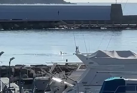 Nelle immagini si nota chiaramente il mammifero che nuota nelle acque interne tra Portosole e il porto vecchio.