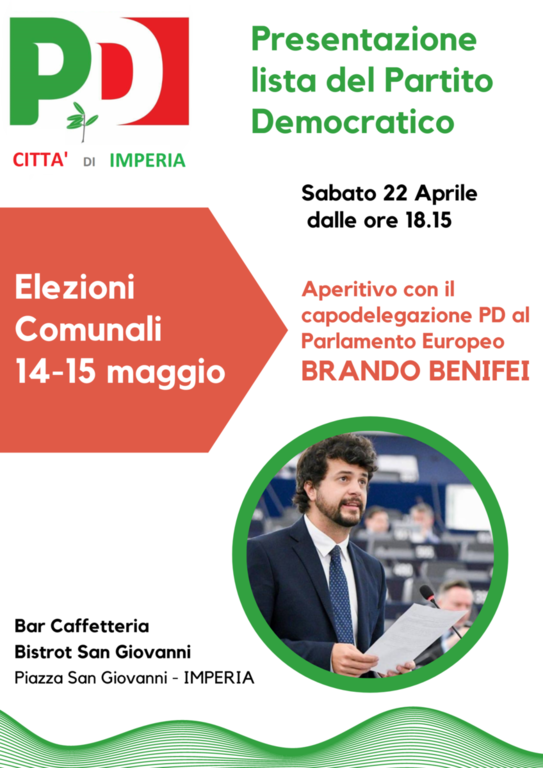 “Nel cuore del centro storico di Imperia Oneglia – evidenziano dal Pd - presenteremo la lista alle prossime elezioni amministrative. Una lista che guarda al futuro con la partecipazione dell'amico del circolo PD di Imperia, l'eurodeputato Brando Benifei, sempre vicino al nostro circolo e attento alle vicende del territorio”.