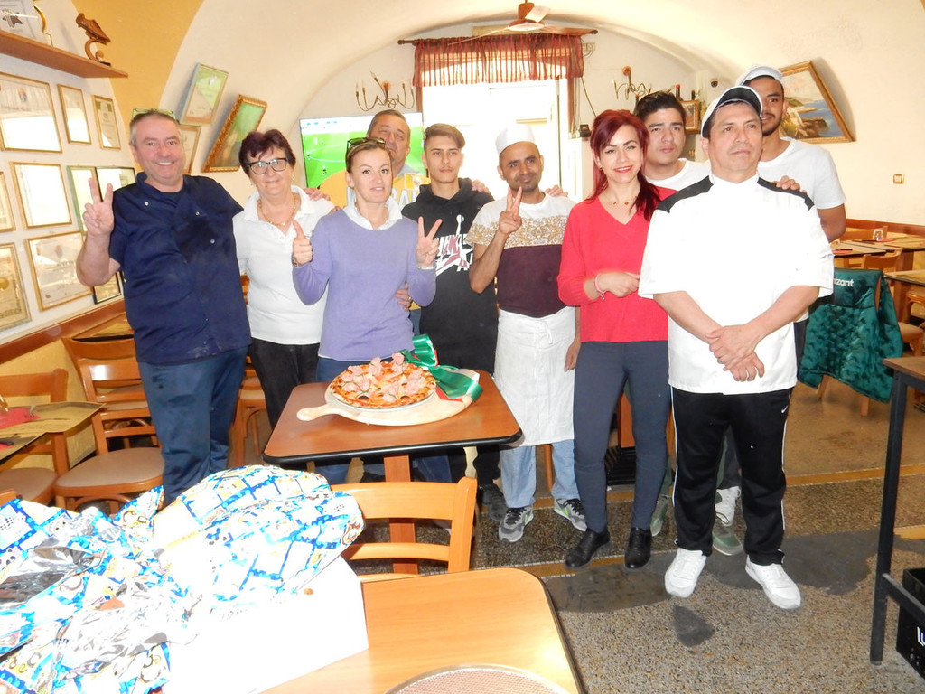 Alla trasferta in terra emiliana prendono parte, oltre al titolare della pizzeria, Davide Bianchi, il pizzaiolo Ricky, lo chef Taluk Der, il maestro pasticciere Aldo Bianchi ed il p.r. Francesco Franz Verrando.
