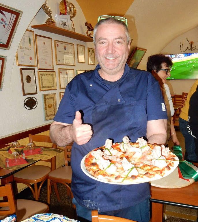 Subito in gara la Pizzeria Sant'Ampelio di Bordighera, che partecipa alla kermesse iridata ininterrottamente dal 2012 e che proporrà una pizza particolare il cui nome e gli ingredienti non si possono ancora rivelare nel rispetto del regolamento.