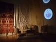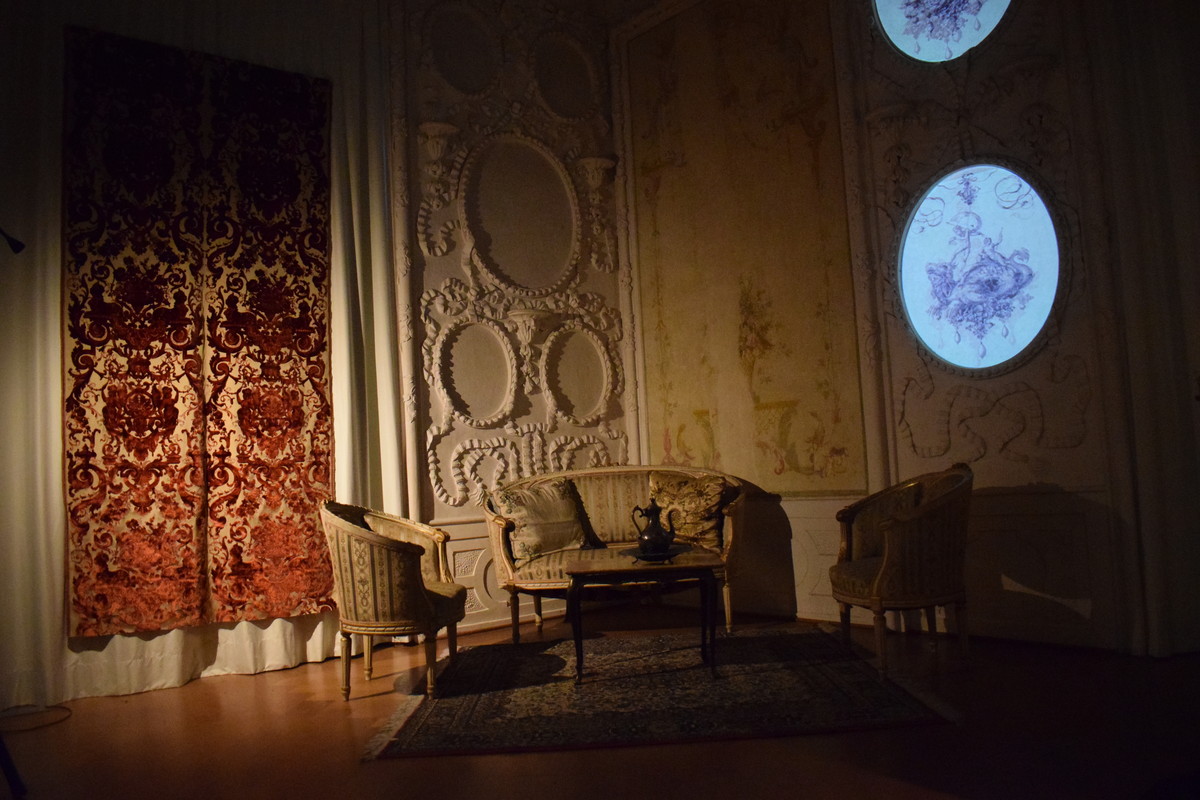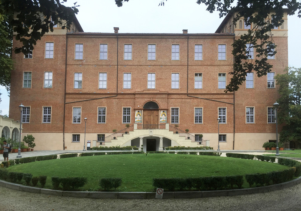 L’ambiente espositivo è straordinario: un chiostro verdeggiante sulle cui colonne spiccano, rosso su bianco, le splendide formelle in terracotta applicate agl’inizi del Cinquecento. Fu il cardinale Domenico Della Rovere a commissionare la ristrutturazione dell’antico castello per farne un elegante palazzo in stile rinascimentale. Lo stesso cardinale commissionò, probabilmente ad allievi del Pinturicchio, i magnifici fregi nel Salone d’Onore e le decorazioni a grottesca nel piano superiore, delle quali resta integra la Stanza delle Stagioni, nello stile elegantissimo della Domus Aurea neroniana. Quella tradizione decorativa è ripercorsa, nelle sue evoluzioni storiche, nella straordinaria esposizione allestita al Castello di Vinovo, aperta fino al 14 maggio: Enigmi dipinti. Dalla Domus Aurea di Roma alle grottesche di Vinovo, a cura di Giordano Berti. Un percorso espositivo che si avvale di un coinvolgente allestimento scenografico, firmato dalla designer Letizia Rivetti, e delle videoproiezioni create dal Teatro Carillon di Torino.