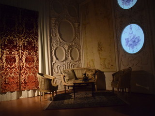 L’ambiente espositivo è straordinario: un chiostro verdeggiante sulle cui colonne spiccano, rosso su bianco, le splendide formelle in terracotta applicate agl’inizi del Cinquecento. Fu il cardinale Domenico Della Rovere a commissionare la ristrutturazione dell’antico castello per farne un elegante palazzo in stile rinascimentale. Lo stesso cardinale commissionò, probabilmente ad allievi del Pinturicchio, i magnifici fregi nel Salone d’Onore e le decorazioni a grottesca nel piano superiore, delle quali resta integra la Stanza delle Stagioni, nello stile elegantissimo della Domus Aurea neroniana. Quella tradizione decorativa è ripercorsa, nelle sue evoluzioni storiche, nella straordinaria esposizione allestita al Castello di Vinovo, aperta fino al 14 maggio: Enigmi dipinti. Dalla Domus Aurea di Roma alle grottesche di Vinovo, a cura di Giordano Berti. Un percorso espositivo che si avvale di un coinvolgente allestimento scenografico, firmato dalla designer Letizia Rivetti, e delle videoproiezioni create dal Teatro Carillon di Torino.