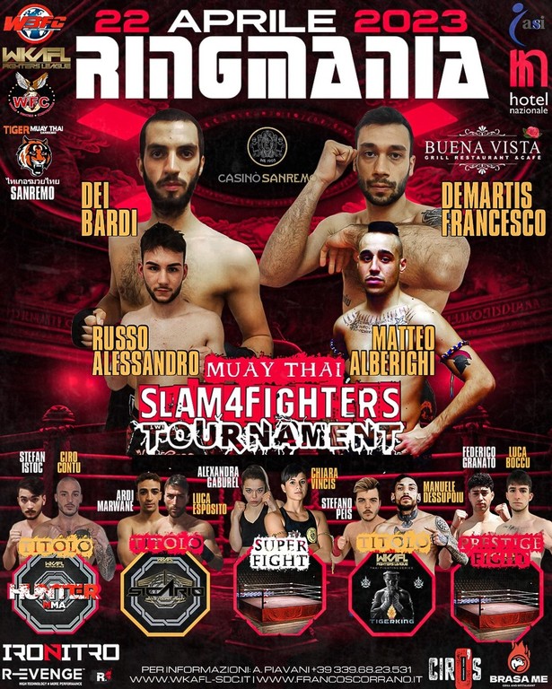 Si svolgerà sabato nel bellissimo palcoscenico del Teatro Casinò di Sanremo, una delle manifestazioni più importanti che sì svolgono sul panorama Italiano. Di scena una delle tappe di selezione di Ringmania World Series, un gala d'eccellenza che spazia da incontri Pro e amatoriali con atleti di indiscusso valore e selezionati per le loro capacità e qualità.