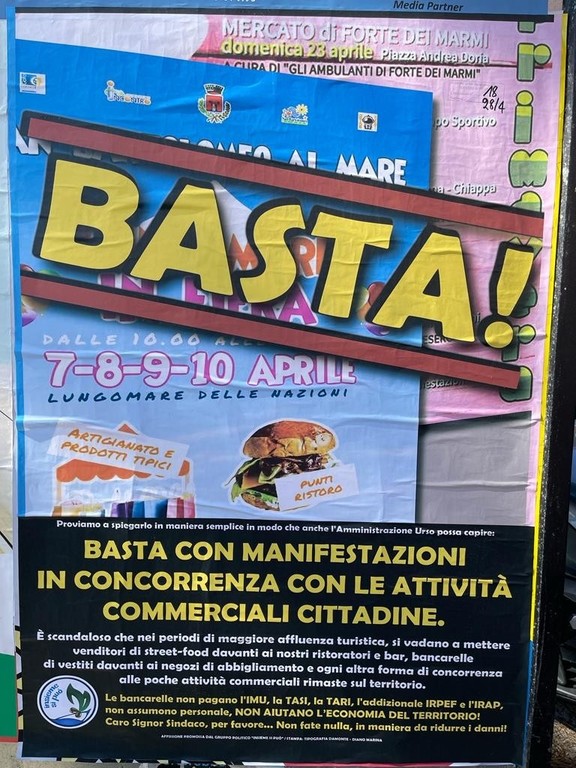 “Gli organizzatori di questi eventi contribuiscono – prosegue Urso - con fornitura di materiali vari, di spettacoli e anche finanziariamente, alla costruzione del calendario delle manifestazioni che, come ben sapete, viene realizzato con importi molto inferiori a quanto avviene in altre località, peraltro riscuotendo consensi diffusi sia dai turisti che dagli organi di stampa. La stessa cosa accade per le cosiddette ‘bancarelle’: a fronte di un congruo contributo concediamo spazi affinché vengano organizzate manifestazioni commerciali che sono esse stesse catalizzatrici di interesse, anche a vantaggio delle attività commerciali stanziali, così come avviene in tutte le località turistiche. Compreso il Mercato degli ambulanti di Forte dei Marmi che ha riscontri positivi in tutta la Liguria. Tra l'altro, tra qualche giorno, proprio una delle organizzazioni di categoria organizzerà una cosa simile, anche con la partecipazione dei commercianti di San Bartolomeo al Mare”.