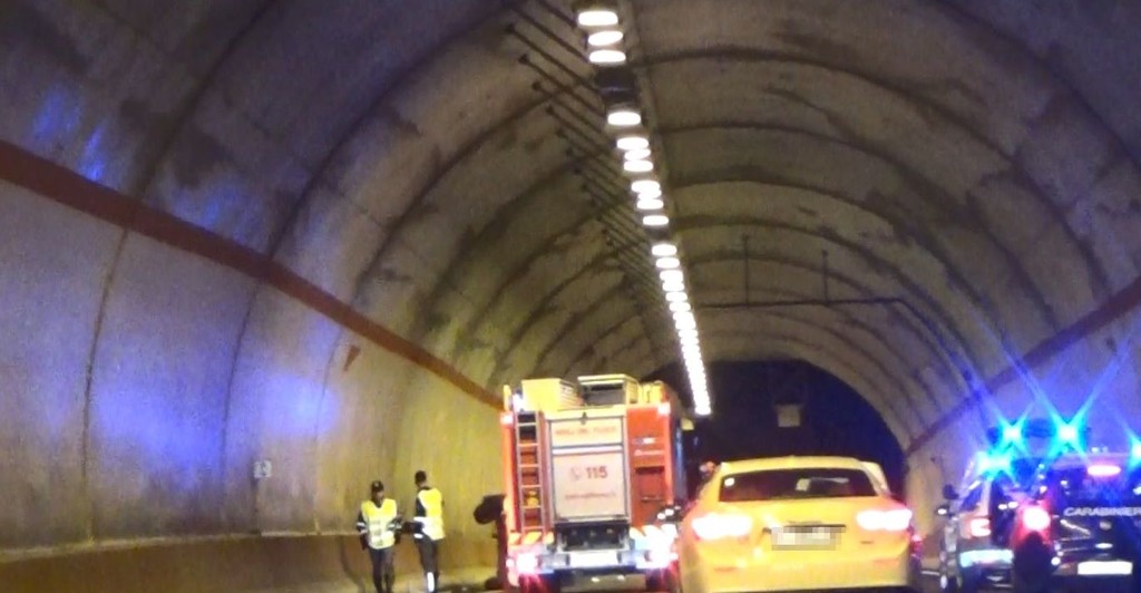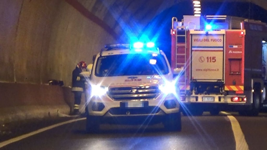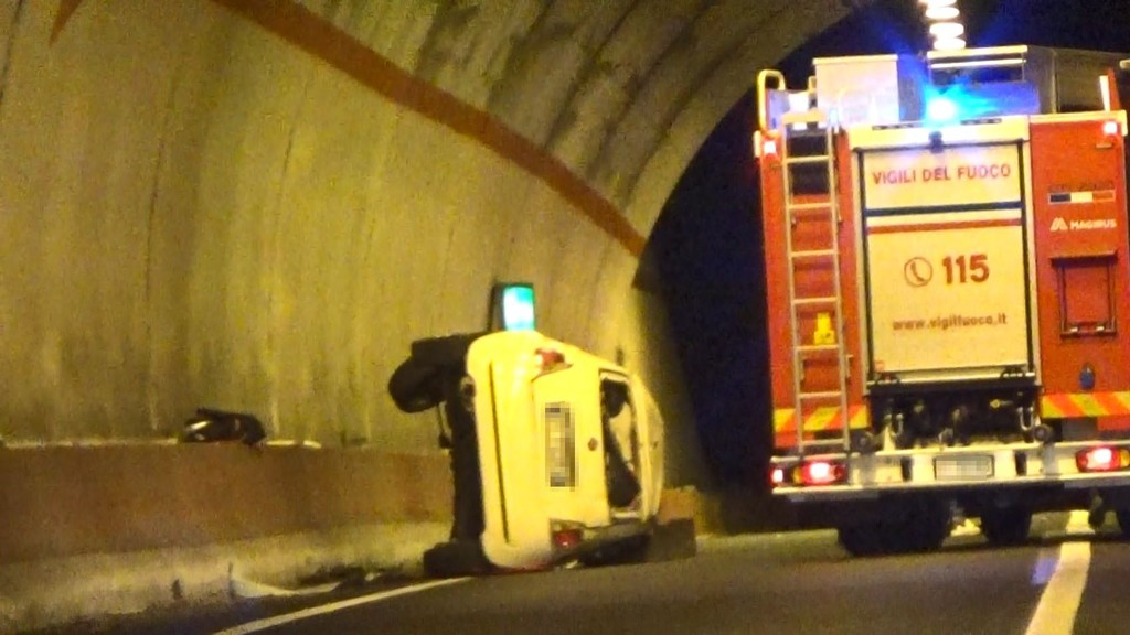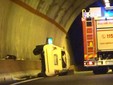 Intervento dei vigili del fuoco, in serata, per un'auto che si è ribaltata in galleria sulla statale 28 a Gazzelli, frazione di Chiusanico.