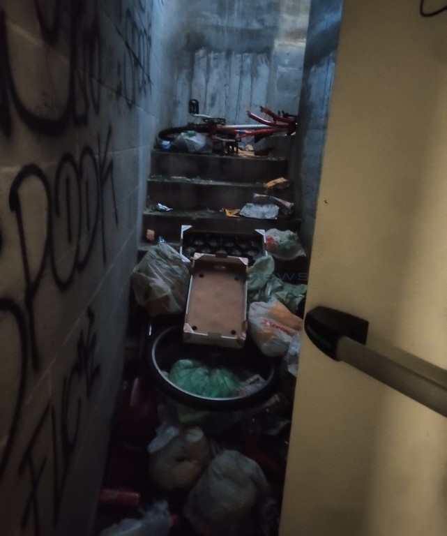 Sanremo: una montagna di spazzatura nelle scale del parcheggio coperto di Coldirodi