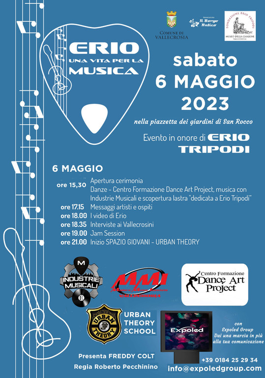 Nella piazzetta dei giardini di San Rocco a Vallecrosia domani pomeriggio andrà in scena un evento in onore del grande ristoratore e appassionato di musica Erio Tripodi, scomparso nel 2005: “Erio una vita per la musica”.
