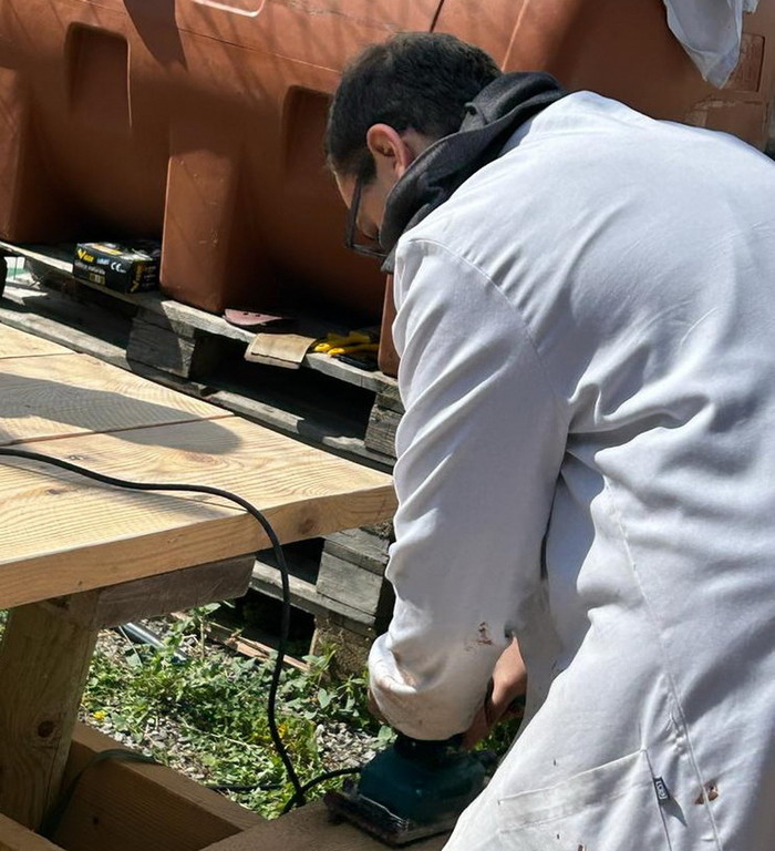 Gli allievi, seguiti dai docenti Sandro Bozzano, Stefano Pugi e Marco Ramella hanno lavorato senza sosta mettendo in pratica tutte quelle competenze professionali, trasversali e manuali, apprese durante il Triennio. I ragazzi hanno carteggiato, smussato e verniciato un tavolo e le relative panche, hanno altresì eseguito lo sfalcio del giardino, rendendo l’area fruibile e in sicurezza a tutti gli alunni della scuola e a completamento dei lavori eseguiti precedentemente dagli studenti d’oltralpe.