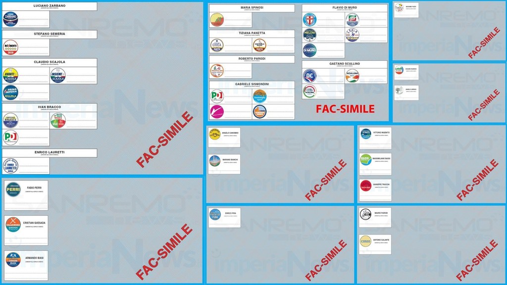 Ad Imperia sono cinque i candidati a Sindaco. Seguendo l’ordine della scheda elettorale troviamo Luciano Zarbano che, dopo le note vicende con Fratelli d’Italia, si candida con ‘Imperia senza padroni’. Quindi Stefano Semeria con il Movimento Cinque Stelle e Claudio Scajola, attuale sindaco che porta tre liste civiche: ‘Avanti’, ‘Insieme’ e ‘Prima Imperia’. Quello che è considerato il suo maggiore antagonista è Ivan Bracco che si presenta con la lista civica ‘Imperia rinasce’ e con ‘Alleanza Verdi Sinistra’ e il Parttito Democratico. Infine troviamo Enrico Lauretti con la lista ‘Società aperta’.