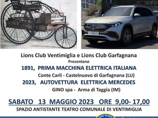 La mobilità elettrica al centro dello spazio antistante il teatro comunale di Ventimiglia, in via Aprosio. Un’iniziativa organizzata, ieri, dal Lions club Ventimiglia e dal Lions club Garfagnana, in collaborazione dell’associazione antiche ruote-concessionaria Gino Spa, per contribuire all’acquisto di un cane guida. Durante la giornata si è potuta, infatti, ammirare la prima macchina elettrica italiana di Conte Carli di Castelnuovo di Garfagnana, realizzata in legno nel 1891, e l’autovettura elettrica Mercedes di Gino spa di Arma di Taggia realizzata nel 2023.