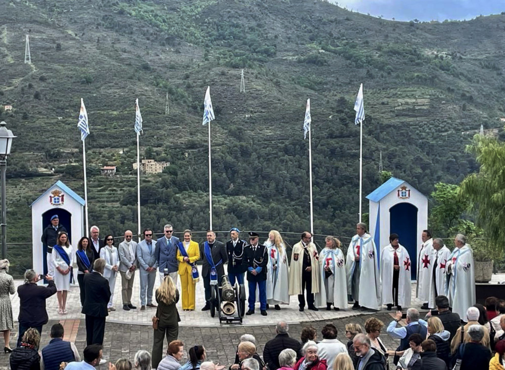 Un piccolo comitato di cavalieri templari ha quindi accolto la delegazione presso il sagrato della Chiesa di San Bernardo, accompagnandola poi verso Piazza Martiri Patrioti dove ad attenderli si trovava la Principessa Nina scortata dalle Guardie e accompagnata da alcuni Consiglieri della Corona e dal resto dello staff coinvolto nel progetto (Andrew Knox, lo scrittore James Vasey e la sua consorte, Linda Bulloch). Dopo un momento di saluti e di reciproche presentazioni e dopo le fotografie di rito, James Vasey ha tenuto un breve discorso introduttivo a seguito del quale, attorno alle 11:30, sono stati eseguiti l’inno nazionale del Principato e uno sparo del cannone di benvenuto. La Principessa Nina ha quindi ricevuto la delegazione al Palazzo del Governo, dove ha offerto un aperitivo di benvenuto. I convenuti hanno poi visitato il paese e si sono successivamente spostati a Negi per il pranzo. Attorno alle 16 la comitiva è infine ripartita alla volta di Cannes.