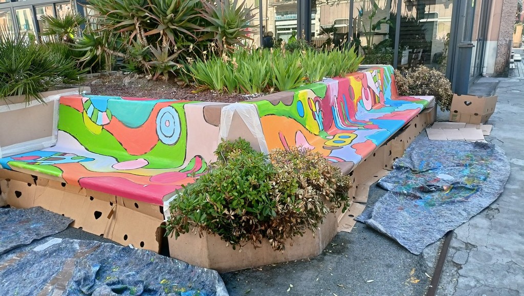 Un’iniziativa originale che fa parte del progetto “Music art a Vallecrosia”, iniziato a febbraio con laboratori di danze popolari, rivolti ai bambini e ai loro genitori che sono andati in scena tutti i sabati, insieme all’associazione culturale ‘Popoli in Arte’ di Sanremo, ad esperti danzatori e a Vilma Testa, che ha coordinato il momento delle danze. I bambini, basandosi sulle sensazioni provate durante i laboratori e ascoltando le musiche delle danze, hanno realizzato dei disegni che l’artista Luca Gavarini, come aveva annunciato in una precedente intervista, ha poi riprodotto su muri e panchine della città affinché gli alunni delle elementari potessero colorarli con passione e creatività.