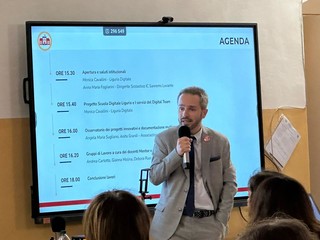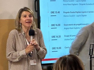 Saluti istituzionali e apertura in plenaria a cura della preside Anna Maria Fogliarini che ha introdotto l'intervento di Andrea Cartotto, ambasciatore sul territorio ligure del progetto. Si è entrati poi nel vivo dell'incontro, con gli interventi di Monica Cavallini, referente del Progetto Scuola Digitale Liguria e di Angela Sugliano: la prima ha presentato il progetto, con focus sul Digital Team e sull'azione Steam-Up; la seconda - insieme ad Anita Granili - l'osservatorio dei progetti innovativi e l'importanza della documentazione multimediale.