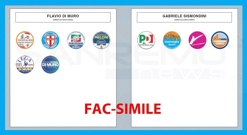 Tanti i temi sul tavolo, sciorinati in una lunga campagna elettorale, a tratti molto dura e con i due contendenti a caccia degli ultimi consensi. E ovviamente pronta anche la scheda elettorale che i ventimigliesi troveranno nei seggi e che prevede, nella parte di Di Muro il simbolo dei Frontalieri, a seguito del cosiddetto ‘apparentamento’ fatto con la lista di Roberto Parodi.