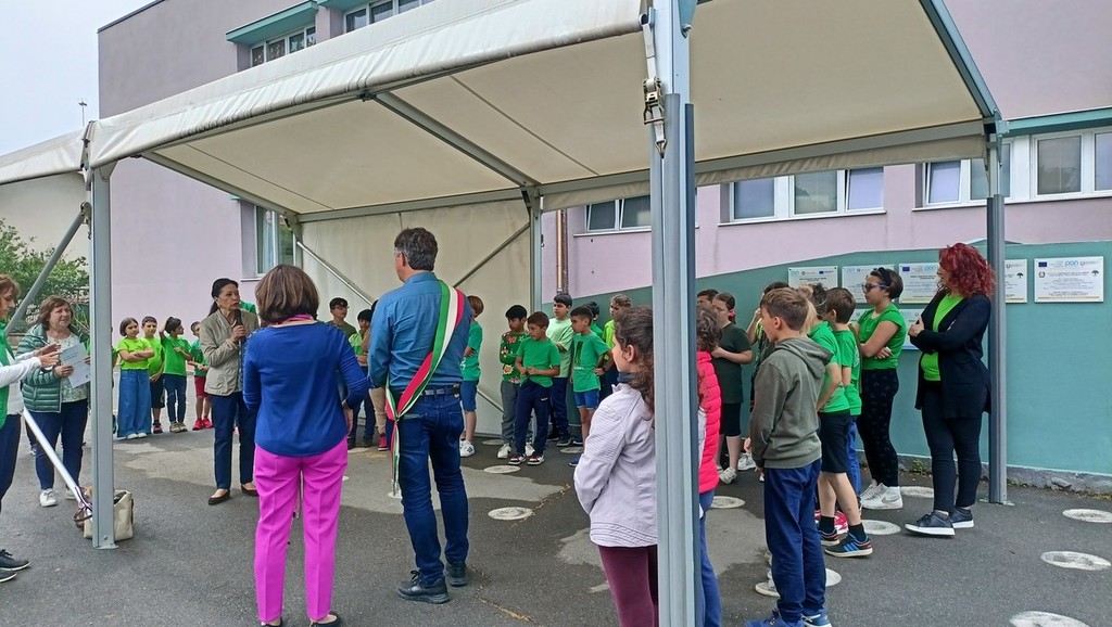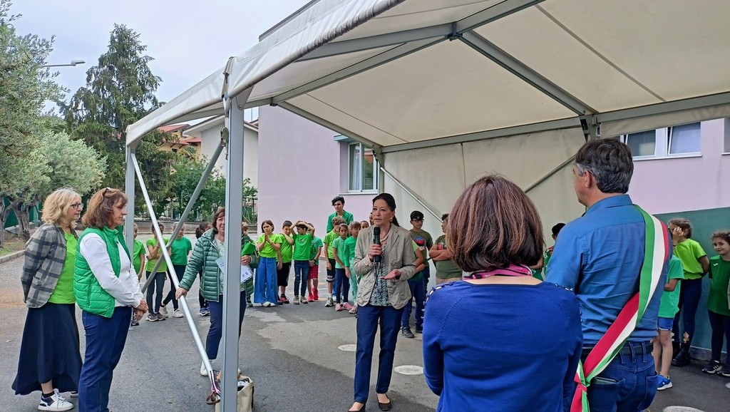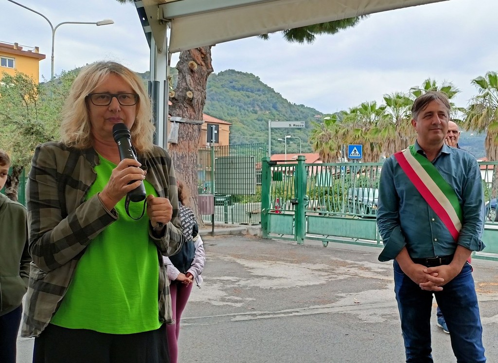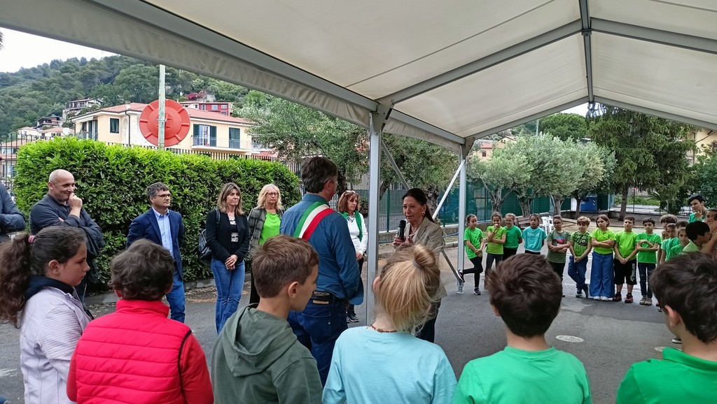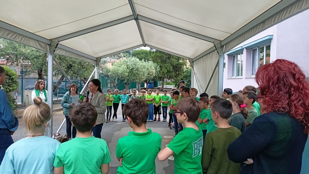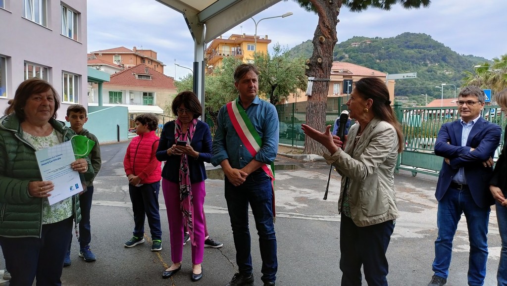 Alla cerimonia di consegna erano presenti il sindaco di Camporosso Davide Gibelli, il vicesindaco Fulvia Raimondo e i consiglieri comunali Sara Canale, Marco Cannataro e Francesco Cordì, il dirigente scolastico dell'istituto comprensivo della Val Nervia Francesco Lettieri, le insegnanti, i bambini delle classi che hanno realizzato il progetto di educazione ambientale e le referenti Fee Albina Savastano e Marina Dri.