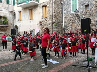 63 bambini delle scuole dell’infanzia e della primaria di Soldano e di Perinaldo, ieri pomeriggio, hanno messo in scena un evento musicale nella piazzetta del Rossese nel Comune del sindaco Isio Cassini. “E’ una bella manifestazione voluta dalle maestre, dopo un progetto di collaborazione, durato tutto l’anno, tra gli alunni di Soldano e quelli di Perinaldo” - dice il primo cittadino di Soldano - “Le scuole sono vita per i nostri paesi. Desidero ringraziare le maestre dell'infanzia di Perinaldo Emanuela e Piera, il maestro Gianni della primaria di Perinaldo, le maestre dell'infanzia di Soldano Manuela, Claudia e Caterina e le maestre della primaria di Soldano Mariella, Cristina, Chiara, Federica, Valentina, Giulia e Ortensia. Ringrazio anche Maria, Martina e Simona del personale Ata”.