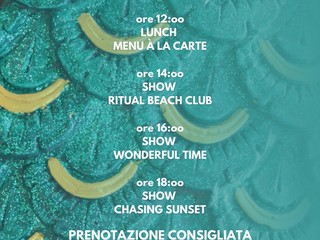 Ingresso libero ma i posti sono limitati. Per prenotazioni al Ritual Beach Club Experience: Tavolo Lunch dalle 12, menù a la carta, lettino e/o baldacchino telefonare al +39 348 569 4364 o su link https://wonderful.style/ritual-beach-club-kukua-bordighera/.