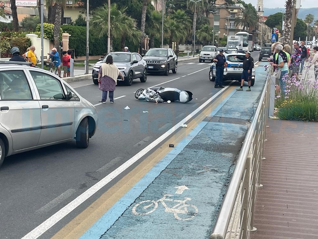 Diano Marina: cade con lo scooter sul lungomare, 39enne trasportato in ospedale (Foto)