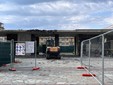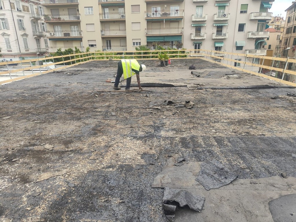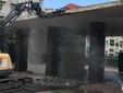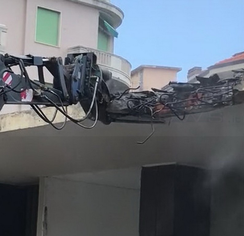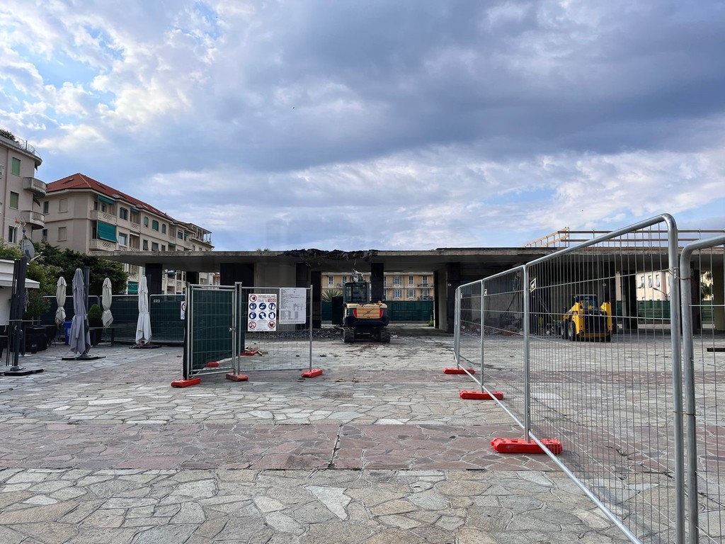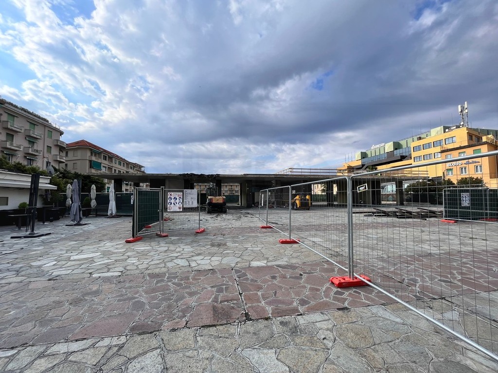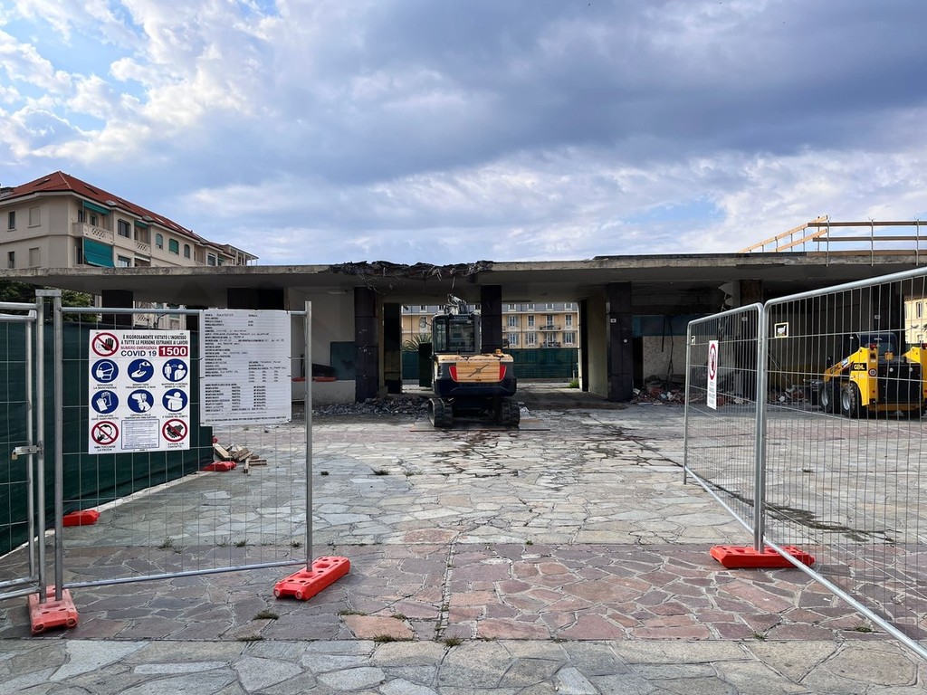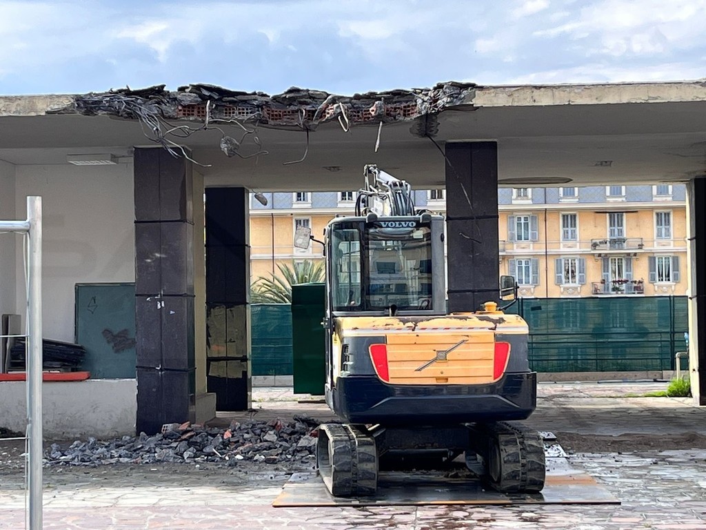 Dopo il posizionamento delle transenne e l’espansione sulla piazza per consentire la distruzione della struttura, è stata costruita una rampa per far arrivare la ruspa fino alla struttura da abbattere. E' stata rimossa anche la guaina isolante e rimossi gli infissi dell’ex biglietteria della Riviera Trasporti.