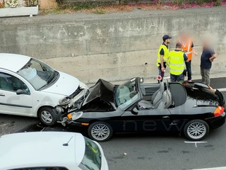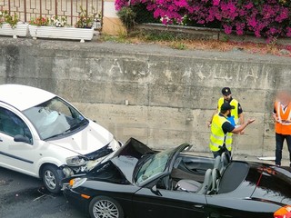 Frontale nel pomeriggio tra Imperia e San Lorenzo al Mare. Stando ai primi dettagli, sembra che oltre alle due auto nella foto ci sia anche un terzo mezzo coinvolto, una moto, forse con targa francese, fuggita dal luogo dell'incidente.