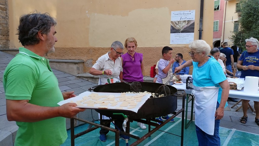 Le protagoniste dell’evento, che rientra nel calendario delle manifestazioni estive proposte dall'Amministrazione comunale, sono state le bugie all’acqua di fior d’arancio amaro, presidio Slow Food del comune di Vallebona, prodotta da La Vecchia Distilleria di Pietro Guglielmi, che ha rimesso in piedi l’attività di famiglia, esistente dal 1856, riuscendo ad espandere la sua attività e a farsi conoscere anche dal mercato estero.