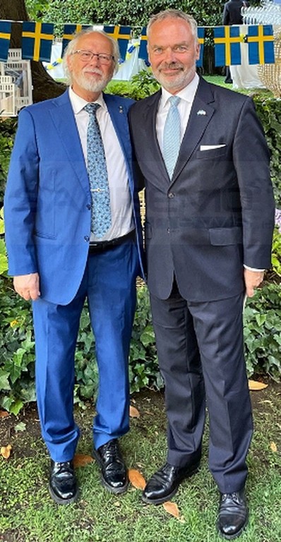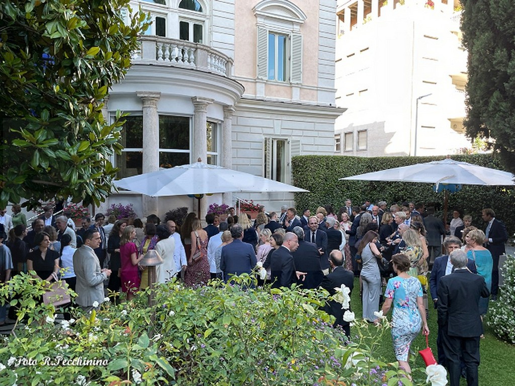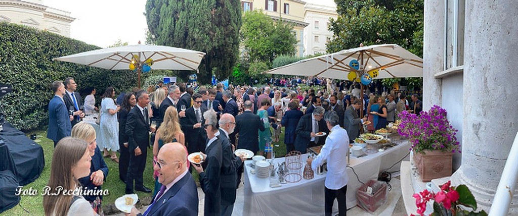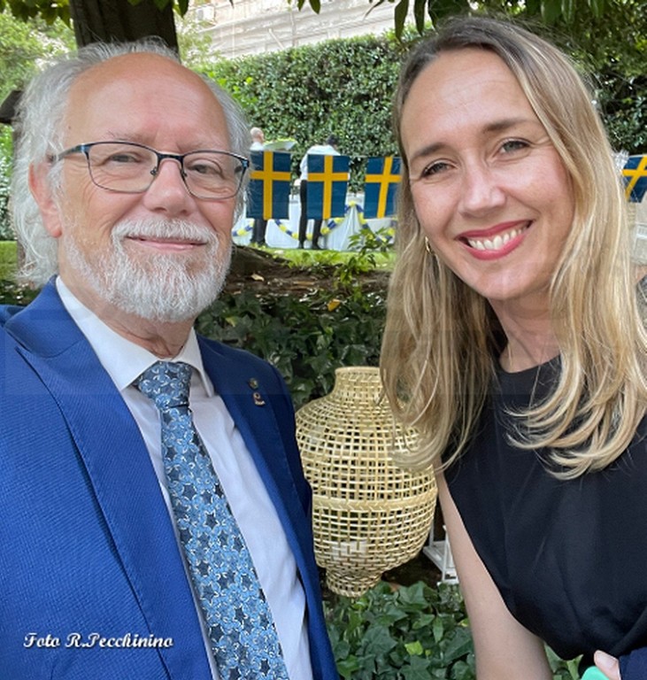 Tra le centinaia di ospiti invitati al ricevimento organizzato nel giardino della residenza privata dall’Ambasciatore Jan Bjõrklund e dalla Signora Anette Brfalk, anche due sanremesi, il dott. Gianmaria Leto (imprenditore, gestore di Villa Nobel e organizzatore della Nobel Week a Sanremo), e il Cav. Uff. Roberto Pecchinino (Presidente dell’Associazione Internazionale Alfred Nobel Sanremo), in rappresentanza di tutti i membri dell’Associazione Nobel sanremese.