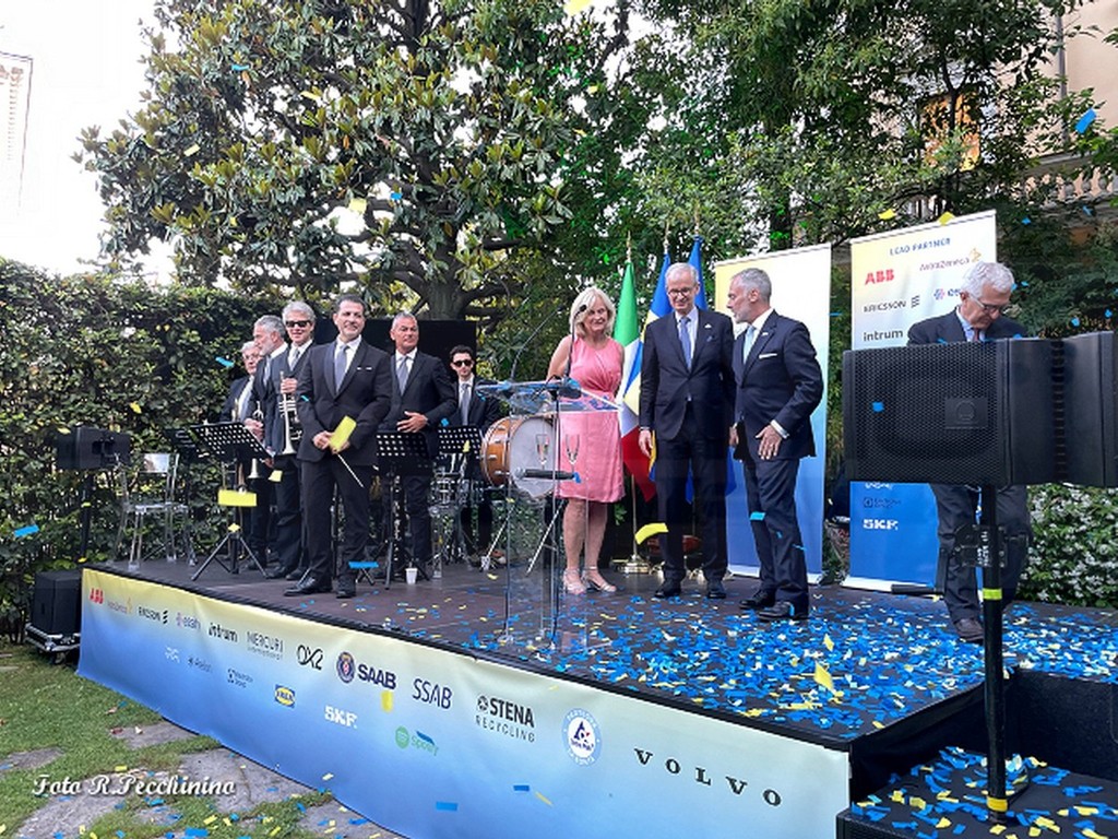 La cerimonia, iniziata con il saluto di benvenuto di S.E. l’Ambasciatore Jan Bjõrklund, è proseguita con il discorso del Sottosegretario per gli Affari Europei Chrstian Danielsson. A seguire gli inni nazionali suonati dal Gruppo Bandistico Cerite diretto dal M° Massimiliano Damato. Grande emozione tra tutti gli ospiti presenti, quando al termine delle note dell’inno Europeo, decine di “cannoni spara coriandoli” sparavano nel cielo migliaia di mini-bandierine con i classici colori svedesi “blu e giallo”, realizzando una splendida scenografia che coinvolgeva con stupore e ammirazione, tutti gli ospiti presenti.