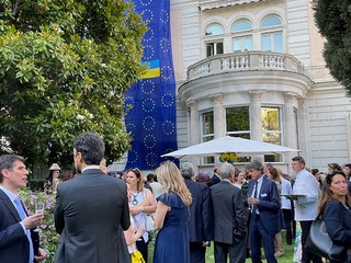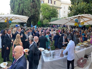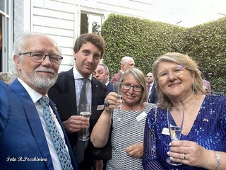 Tra le centinaia di ospiti invitati al ricevimento organizzato nel giardino della residenza privata dall’Ambasciatore Jan Bjõrklund e dalla Signora Anette Brfalk, anche due sanremesi, il dott. Gianmaria Leto (imprenditore, gestore di Villa Nobel e organizzatore della Nobel Week a Sanremo), e il Cav. Uff. Roberto Pecchinino (Presidente dell’Associazione Internazionale Alfred Nobel Sanremo), in rappresentanza di tutti i membri dell’Associazione Nobel sanremese.